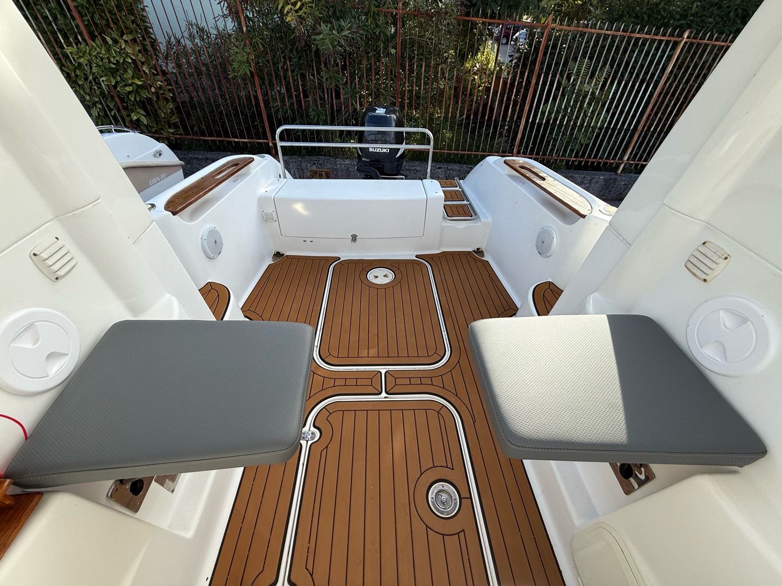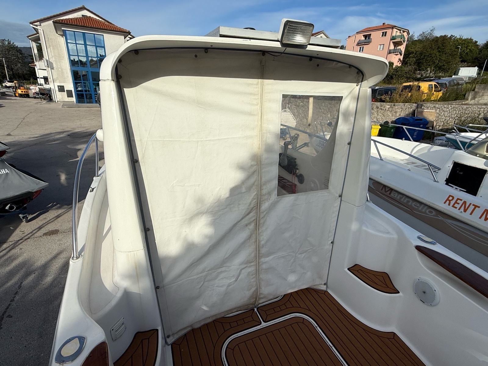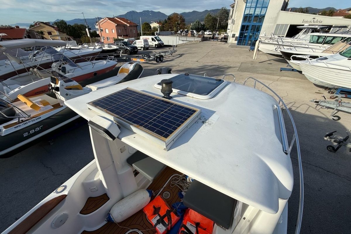 Akumulator u krmi, tuš na krmi, krmena tenda, bimini tenda, set novih unutarnjih madraca, set novih vanjskih madraca, komplet navigacijske opreme, radio sa zvučnicima.