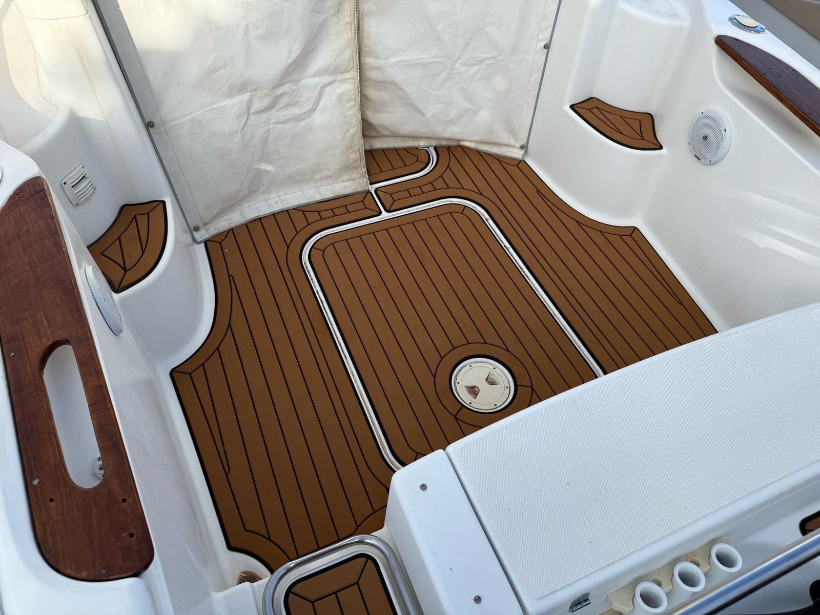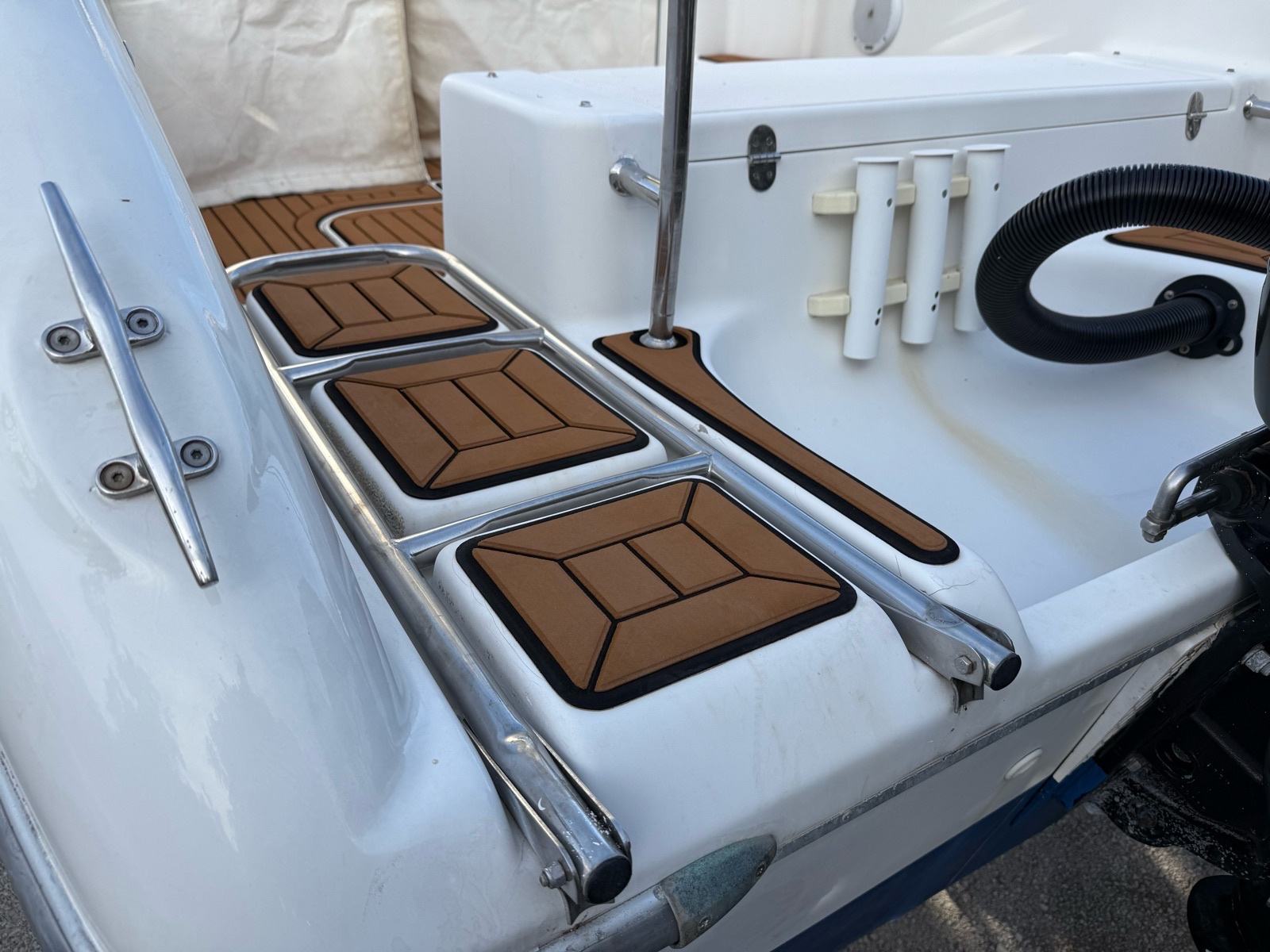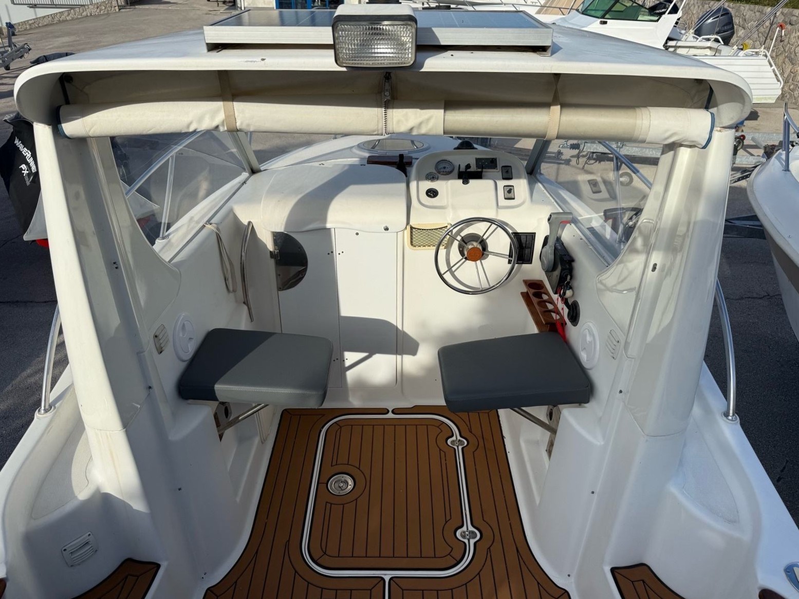 Akumulator u krmi, tuš na krmi, krmena tenda, bimini tenda, set novih unutarnjih madraca, set novih vanjskih madraca, komplet navigacijske opreme, radio sa zvučnicima.