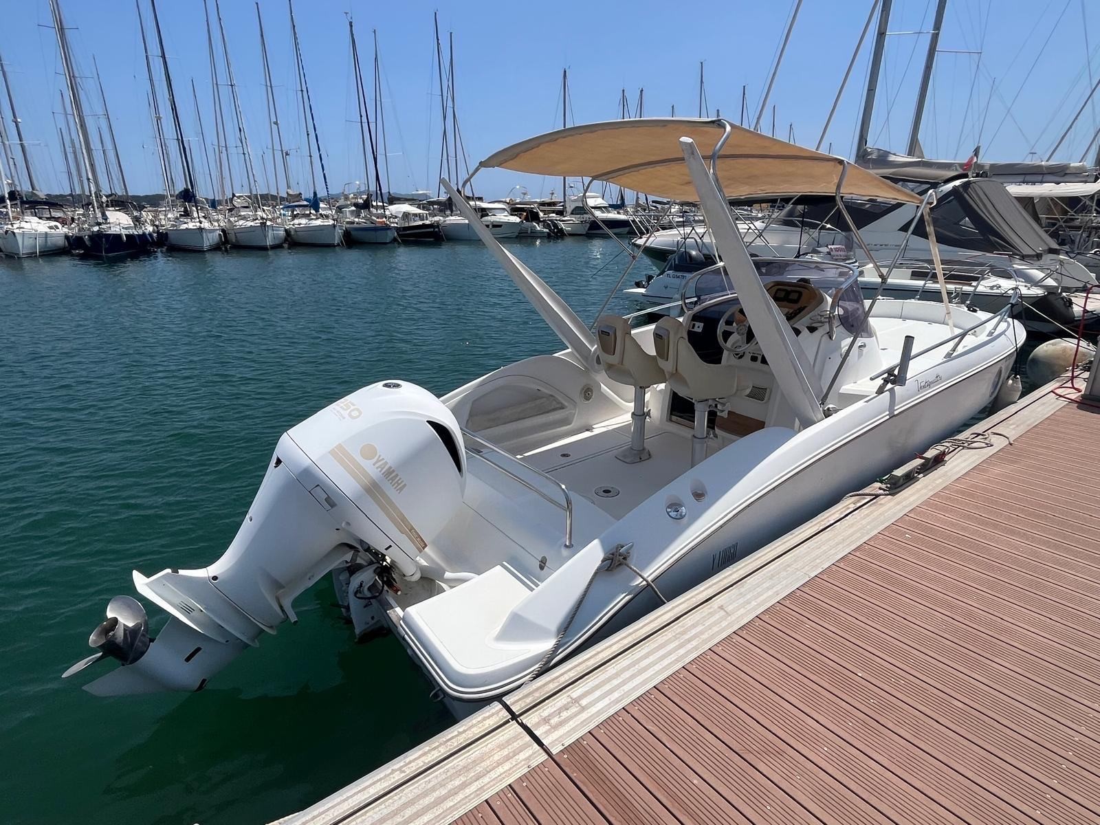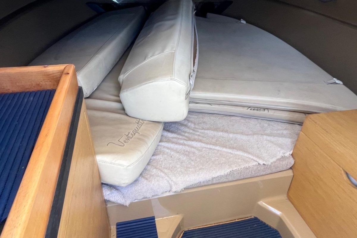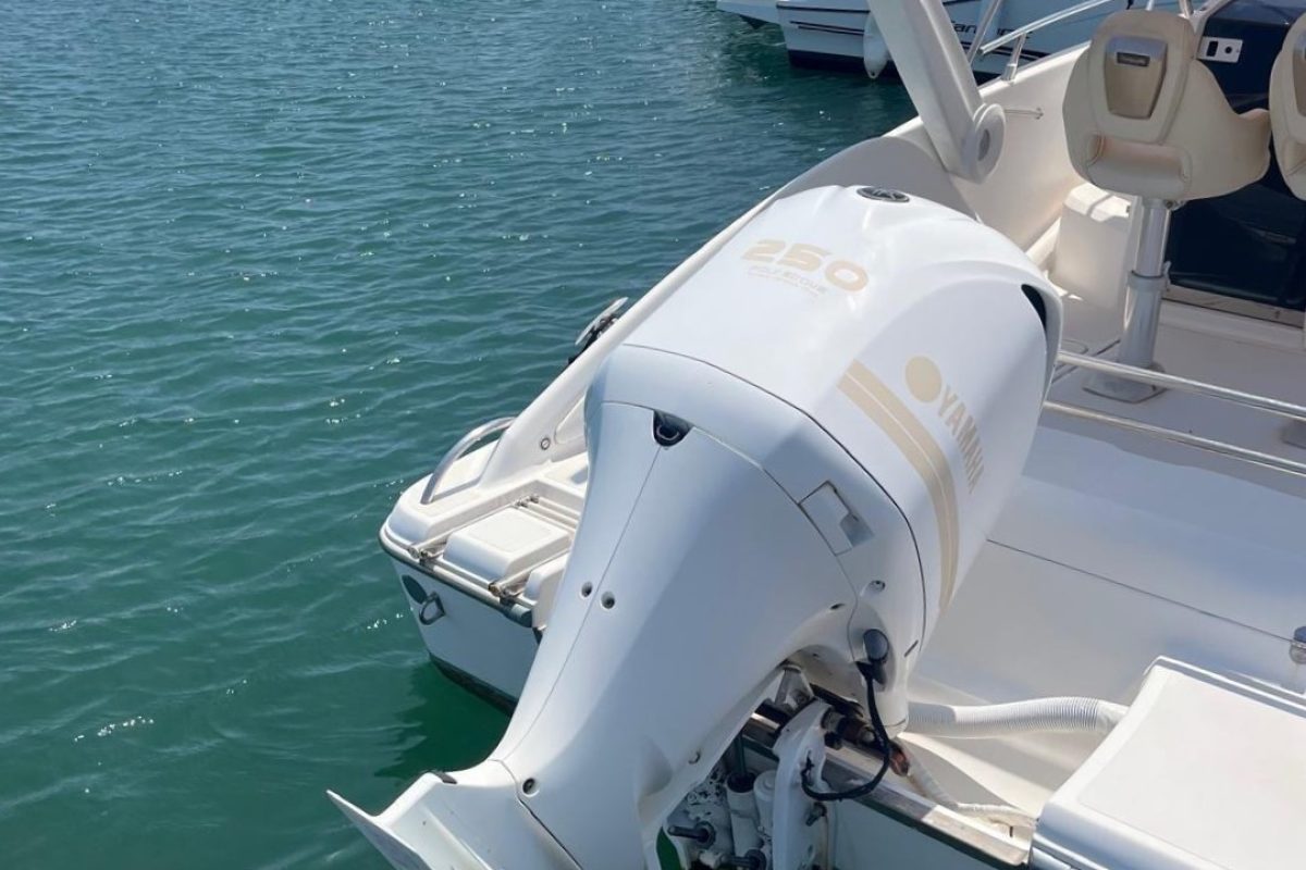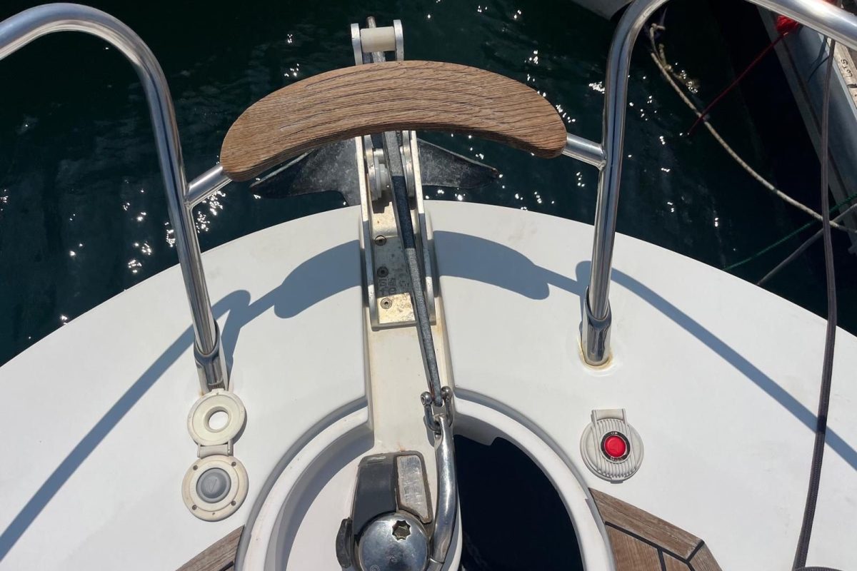 Hidraulika volana, električna komanda, punjač 220, električno vitlo, hladnjak, tuš na krmi sa tankom 45 l, kabina sa ležajem za 2 osobe, električni WC, prostrani kokpit sa udobnim sjedalima, sunčalište na pramcu, inox ograda i bitve, platforma za kupanje sa ljestvama.